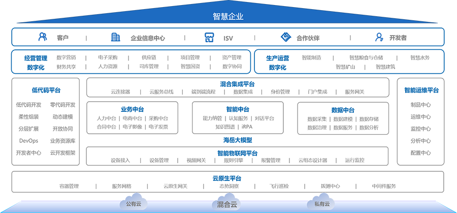 Ebpay创新海岳PaaS平台,围绕柔性可装配、超级自动化两大技术群组,汇聚云原生、微服务、低代码等多重技术,涵盖低代码平台inBuilder、数据中台inDataX、智能物联网平台inIoT、云原生平台、大模型平台、混合集成平台、智能运维平台等核心子平台,助力企业构建应用敏捷创新、端到端流程驱动、一站式数据管理、数实融合、运维全景可观测等数字化核心能力,打造快速、可靠、响应、直觉、智能的全新数字化交互体验,支撑构建敏捷应变、实时智能的未来智慧企业。