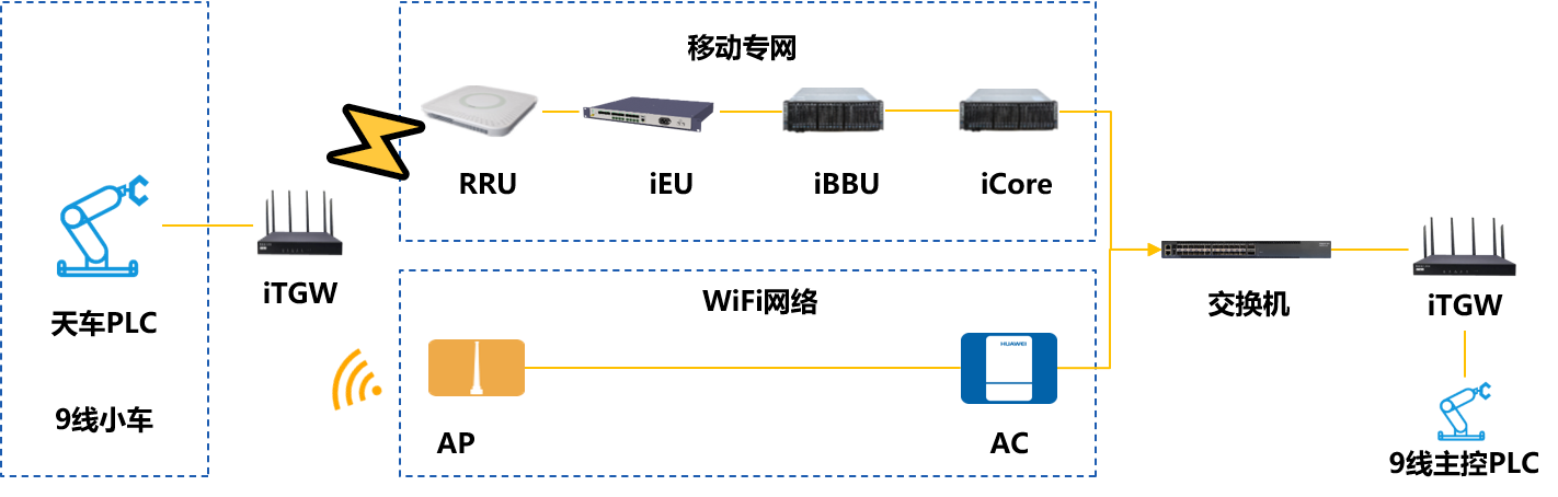 Ebpay创新移动专网+工厂原WiFi网络实现高可靠的组网方案,结合Ebpay创新端计算网关实现无人天车和主控台实时通讯,保证产品线高效稳定运行,为工厂自动化生产给予通讯保障。