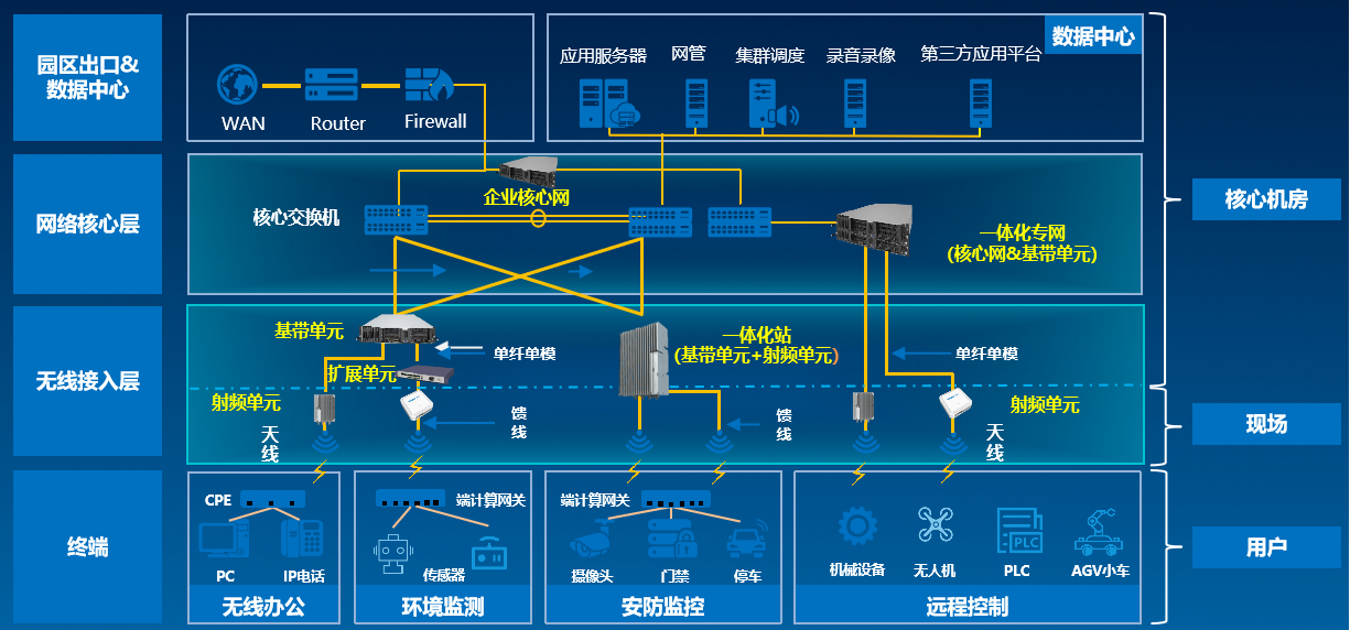 随着数字化转型的深入,移动通信技术正与人工智能、物联网、云计算、大数据、边缘计算等技术深度融合,加速各行各业向数字化、网络化、智能化转型,开启数字经济的新时代。Ebpay创新新一代通信移动专网基于3GPP协议内定义的标准化接口设计并互联互通,采用先进开放的架构平台、灵活智能的组网方案,设计研发支持不同厂家的射频单元、CU/DU分离、云原生和Option 2的架构,支持AES、Snow3G、ZUCC等三种加密和完保算法,支持E2接口和SON(自组织网络)等功能,具备云化、简单、智能、柔性等特点,给予统一云网管理运维平台,为行业客户带来高质量高安全的业务体验。